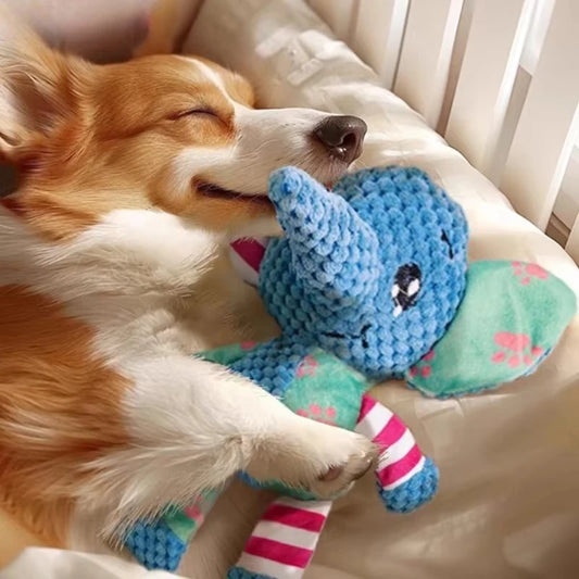 Dog Plush Toy Elephant Squeaky Chew, Bite-Resistant Teething Toy